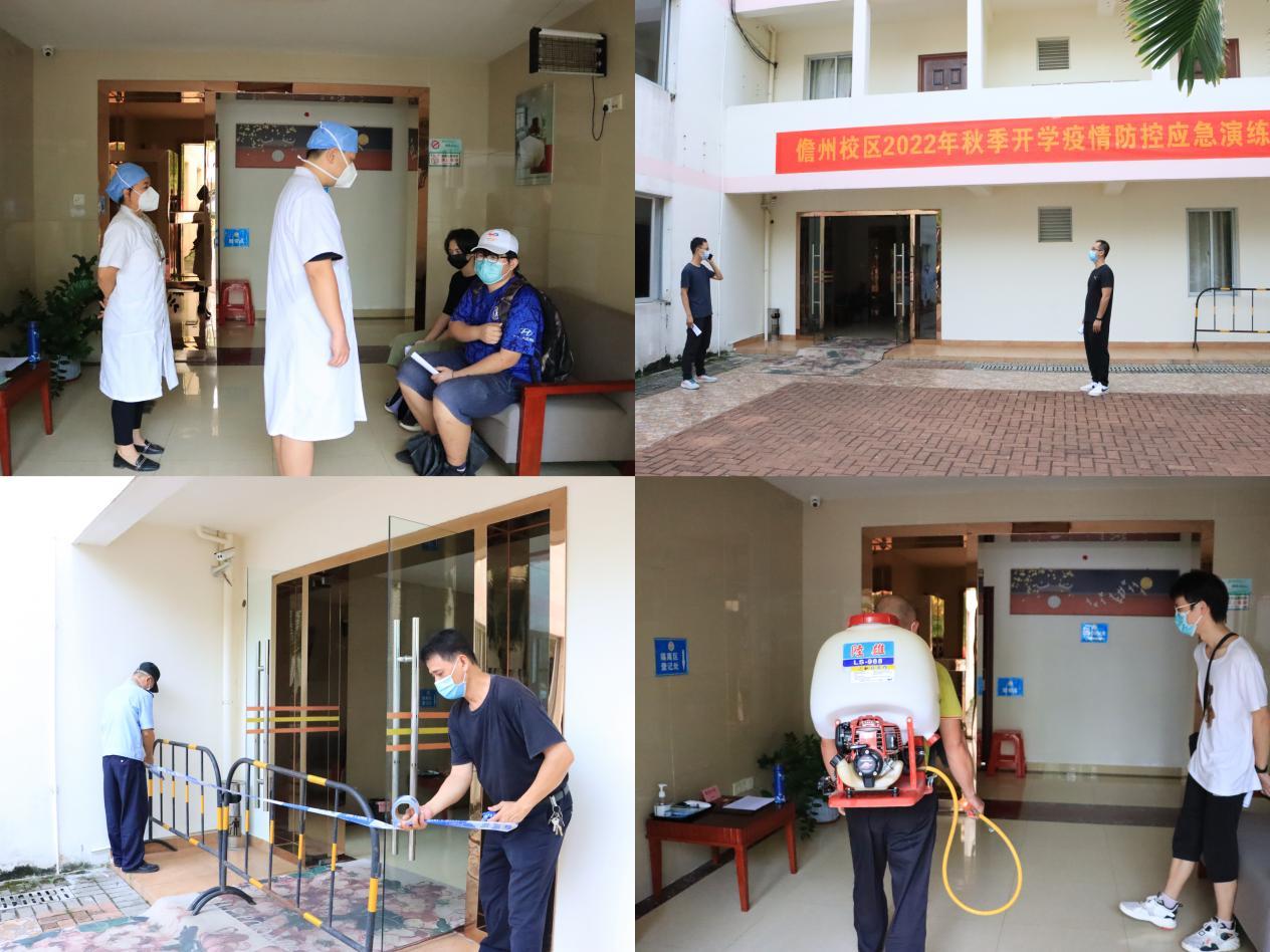 为科学、规范、有序地开展儋州校区新冠肺炎疫情防控工作,进一步完善防控工作各个环节的衔接和落实,儋州校区于9月26日开展了新冠肺炎疫情防控应急演练。儋州市教育局陈正强副局长、儋州市疾控中心副主任唐孔珍、急性传染病科副科长吴振道等到校区指导演练工作,儋州校区管委会、校区医院、保卫处、师生事务保障中心、图书馆、檀雅书院、丹心书院、农业农村学院(乡村振兴学院)与应用科技学院、林学院、生态与环境学院、热带作物学院、园艺学院、离退休服务中心、儋州学术交流中心等单位负责人、辅导员及教职员工代表参加演练。