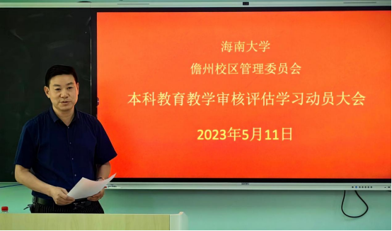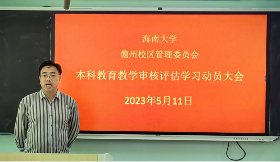 为提高教职工对新一轮本科教育教学审核评估工作的认识,加强对审核评估指标、体系的理解,5月11日下午,儋州校区管委会在3206课室召开本科教育教学审核评估学习培训会。会议由姬卿副主任主持,管委会全体教职工参加了此次培训。