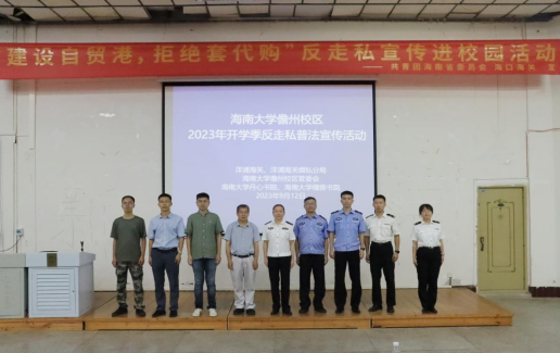 9月12日,为贯彻落实习近平总书记关于打击走私系列重要指示批示精神以及海南省委、省政府的有关部署要求,进一步加强法治宣传教育,结合《海南省法治社会建设实施方案》,“八五”普法规划及相关工作要求,在共青团海南省委、海口海关指导下,洋浦海关与PA视讯官方网站儋州校区在47课室共同开展反走私普法宣传活动。洋浦海关辑私分局政委颜春霞、法制科科长谢荣飞,办公室鲁晓峰,洋浦海关团支部符贞坤、程晓鹏;PA视讯官方网站儋州校区管委会副主任王联春(主持工作)、老师白传武,檀雅书院副书记朱泽琛、丹心书院辅导员史翔宇,23级新生参与活动。