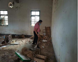 管委会资产科安排人员打扫原商贸公司仓库散落的垃圾