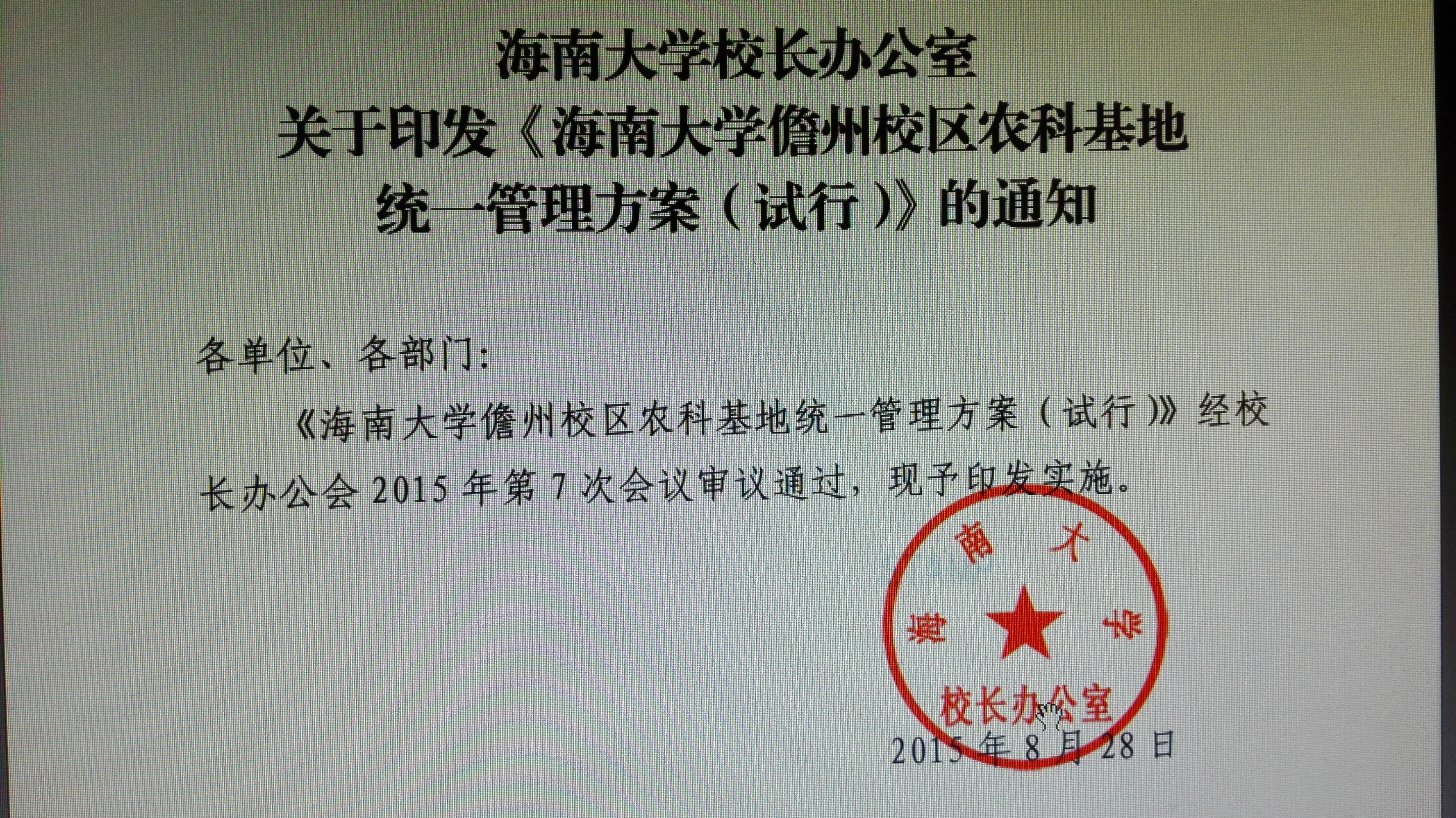 PA视讯官方网站儋州校区农科基地统一管理方案(试行)