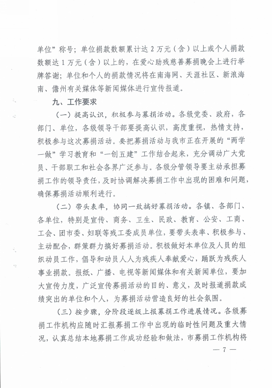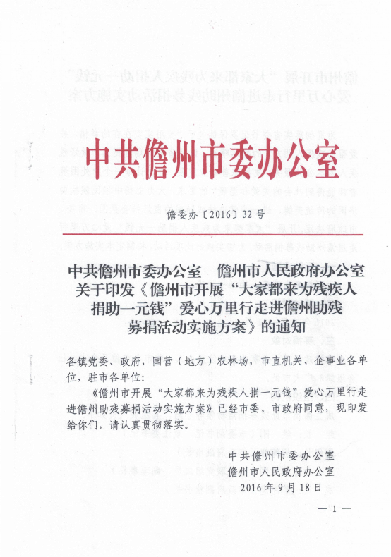 《儋州市开展“大家都来为残疾人捐助一元钱”爱心万里行走进儋州助残募捐活动实施方案》的通知